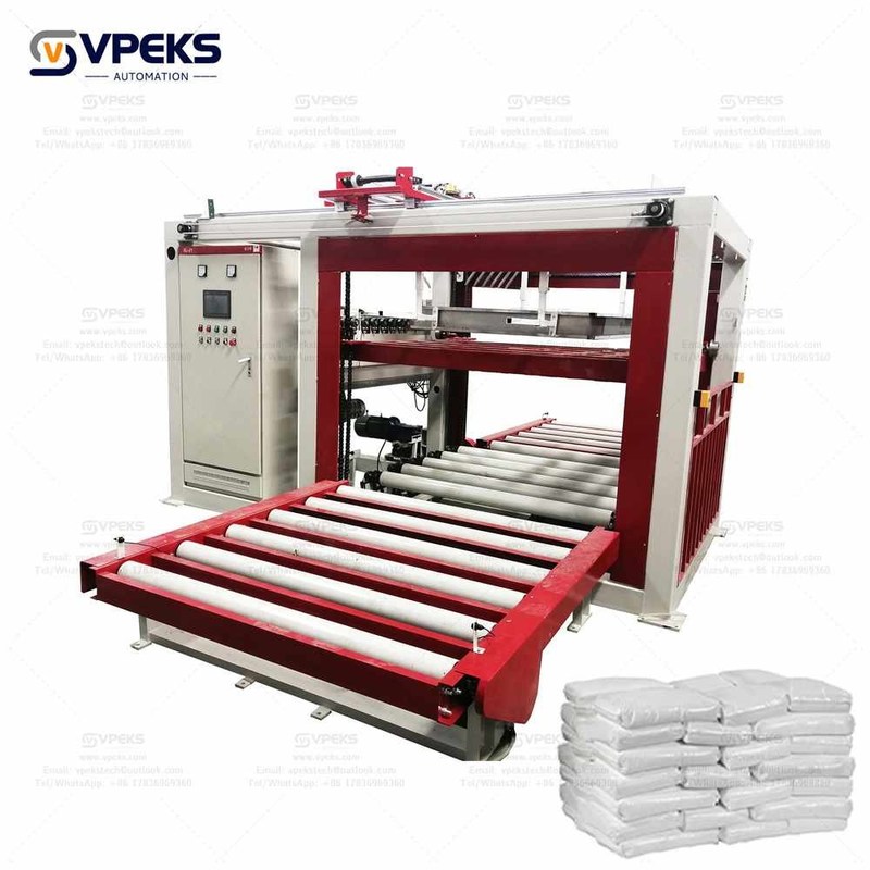 Mesin palletiser tas VPEKS VPK-GWPT dapat palletisasi berbagai jenis bahan baku, menjadikannya produk yang ideal untuk industri yang membutuhkan palletisasi yang efisien.Mesin ini dapat pallet bahan baku ke dalam pallet kayu terkompresi, yang tahan lama dan dapat menahan beban berat. Produk ini cocok untuk pelanggan yang membutuhkan paletisasi volume tinggi, karena memiliki kapasitas pasokan 50 set per bulan.